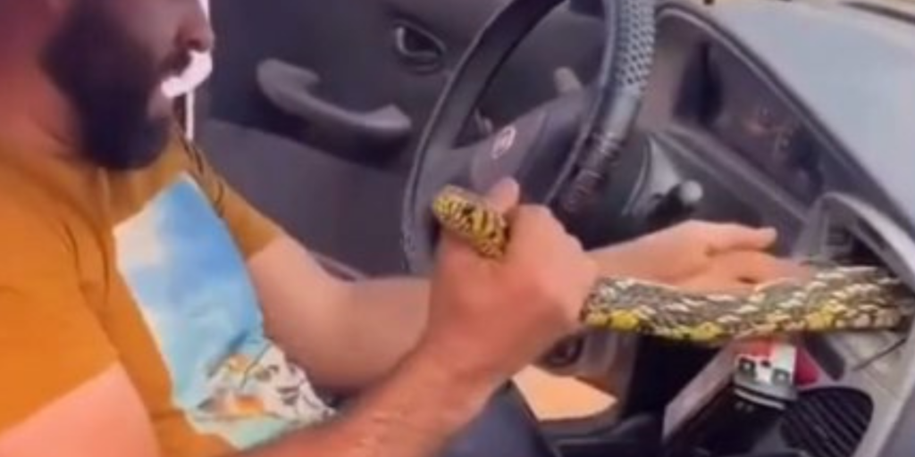 Segundo o relato, o cachorro que o acompanhava começou a latir de forma insistente próximo ao carro, chamando sua atenção. Ao verificar o que estava acontecendo, Túlio percebeu que o animal já estava entrando no automóvel. Ele ainda tentou impedir a entrada utilizando um pedaço de pau, mas não conseguiu afastar a cobra.